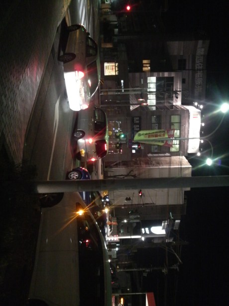 Queste foto sono state scattate ieri nella zona dove lavoro, otto e mezzo di sera. Non vogliono dimostrare nulla se non rassicurare nuovamente parenti e amici che qui, a 800km da Fukushima, tutto è a posto, la corrente c’è, il cibo pure e come all’isola di Giava si mangia, si beve e si fa la rima.